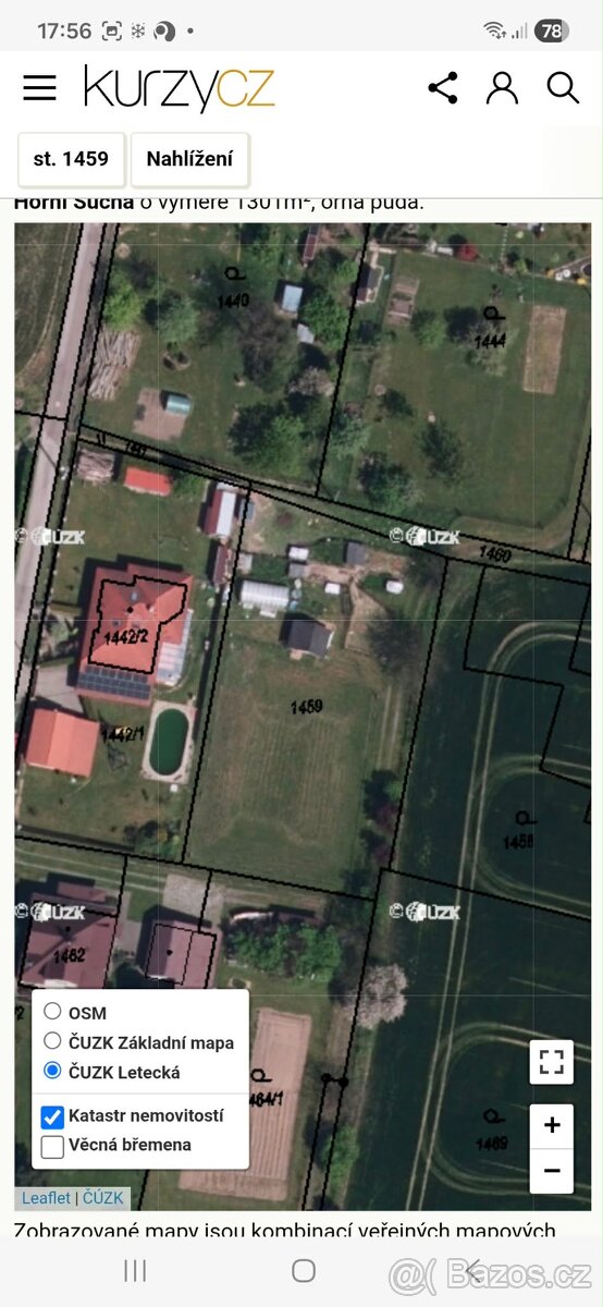 Prodám stavební pozemek o výměře 1301metru čtverečních. Pozemek se nachází v k.u.Horni sucha.