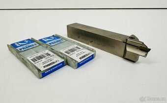 Svěrací držák na upichovací/zapichovací destičku, vnější GFIL 2525 šířka platku : 3 mm celková délka nože : 150 mm zapichovací destička : LCMF 0313 značka : PRAMET Provedení : levé plátky : 19 ks ( nové ) Použití: Zapichovací a upichovací soustružení, soustružení drážek, tvarové a volné zapichování.