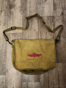 Prodám izraelskou vojenskou výsadkářskou brašnu. Plátěná, přes rameno, velikost cca 40x30x10cm. Vpředu červený výsadkářský znak. Používaná, jsou třeba drobné opravy.
