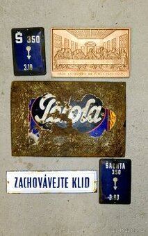 Cena: V textu. 2x označení šachet, armatur ... 250Kč / kus. Torzo cedule Perola ... 300Kč. Zachovávejte klid ... 400Kč. Litinová poslední večeře páně ... 300Kč. Osobní odběr je možný v Plzni, nebo zašlu.