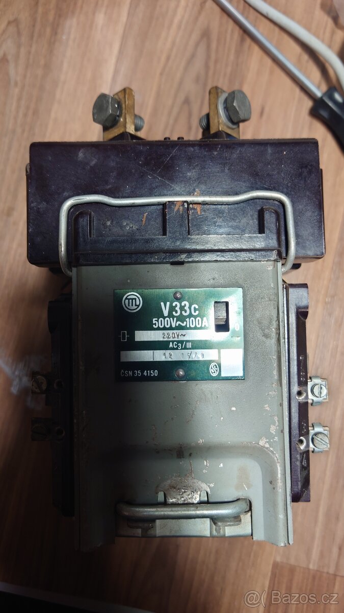 Stykač V33c 100A – funkční, nová cívka Prodám stykač V33c (100 A). Stykač je plně funkční, osazena nová cívka 220 V AC, kostra a kontakty v pořádku – odzkoušeno sepnutím. Technické údaje: • 500 V / 100 A • cívka 220 V AC • AC-3 / III • ČSN 35 4150 Stav odpovídá stáří – kosmetické vady, nemá vliv na funkci. Vhodné jako náhrada do starších zařízení, rozvaděčů, strojů apod. Viz reálné foto preferuji osobní převzetí“ (váha, pošta)