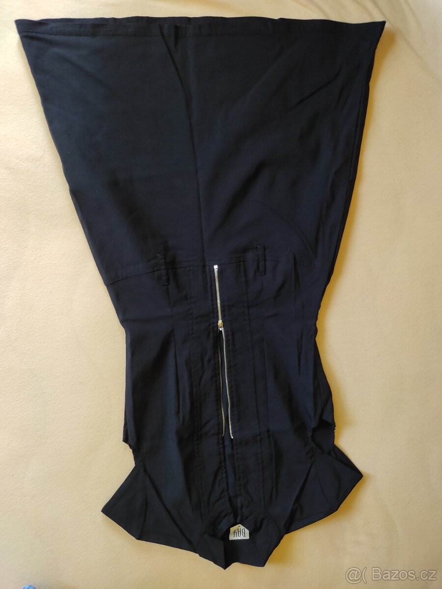 Velikost 10 = S. Mírně se dají natáhnout. Ve předu na zip. Bavlna, stretch.