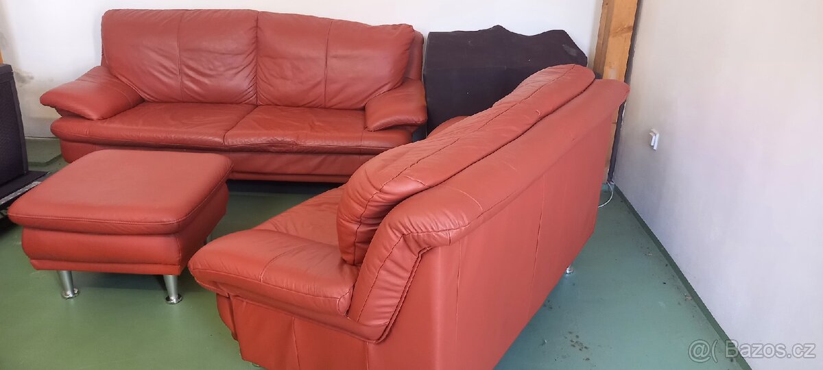 Sedačka kožená set 3+2+taburet