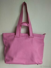 Prodám větší italskou kabelku Vera Pelle, barva růžová. Možno na rameno i do ruky/na zápěstí. Sepnutím spony uvnitř vytvoříte nový tvar kabelky. Uvnitř členící přepážka se zipem tvořící dvě samostatné komory. V jedné dvě volné kapsičky, ve druhé kapsička na zip. Rozměry: 44 x 29 cm, dno 32 x 14 cm. Zapínání za zip 42 cm a magnet. Malá ucha 40 cm, dlouhá ucha 70 cm. Nová, nepoužitá v naprostém pořádku, nekuřácké prostředí. Cena Kč =4.000,- + pošta