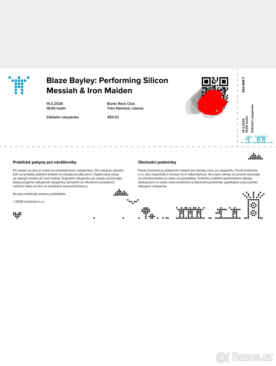 Prodám 1 vstupenku na koncert Blaze Bayley,Liberec.nemůžu jít ze zdr.důvodů