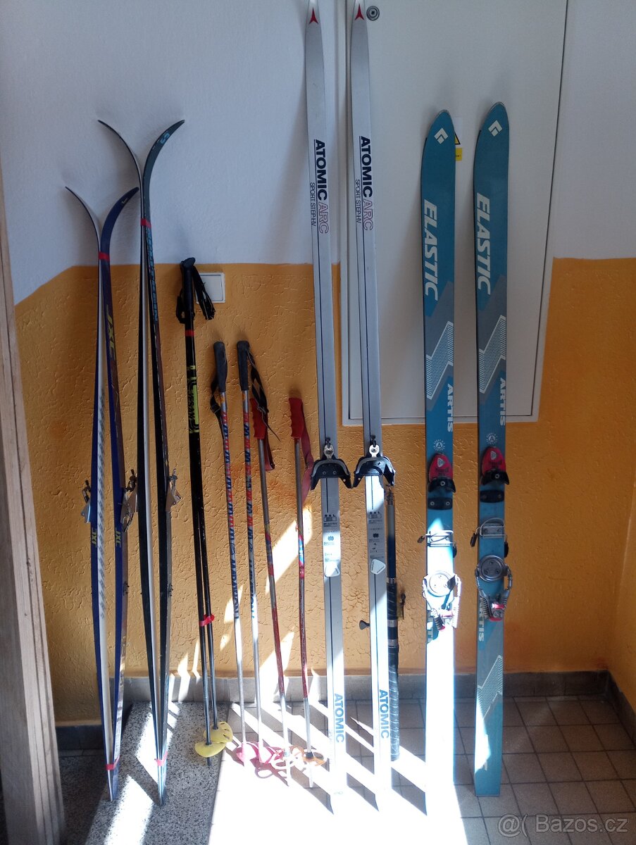 Prodám lyže a hůlky viz foto. Hůlky mají délky 145, 125 a asi 105 cm, sjezdové jsou 180 a běžky 170, 180 a asi 205 cm. Nereaguji na sms. Reagujte ideálně jako odpověď přímo v inzerci a bližší se domluvíme e-mailem. Pokud není v inzerci uvedená cena, tak čekám že jí sami navrhnete zase ideálně přes odpovědní formulář jako první vy. Bližší info e-mailem, osobní odběr v JI, PE nebo Pacově nebo platba předem převodem, poštovné dle rozměrů a váhy asi poštovné ČP 398,- Kč „do ruky“, 378,- Kč „na poštu“ nebo dopravu navrhněte.