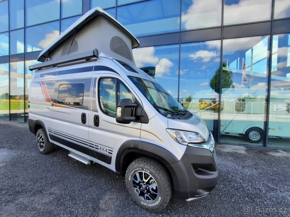 Burstner Campeo C540 4x4, r.v. 07/2022, najeto 30 tis. km, offroad paket, střešní spaní, nejvyšší výbava, nosič na kola, nosič na motorku atd.. Pouze vážní zájemci. Možnost odpočtu DPH.