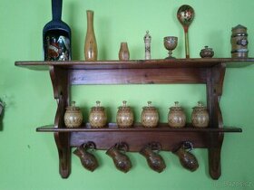 Sada dřevěných kořenek s poličkou.