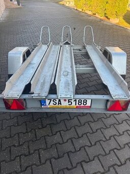 Přívěsný vozík za auto na přepravu motorekProdám přívěsný vozík na převoz tří motorek Nebržděný , sklopný , s nájezdem Koupeno prosinec 2025 max.rychlost 130 km