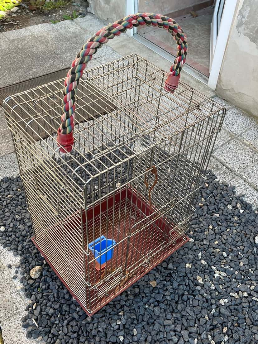 Prodám klec pro papouška a jiné ptactvo. Rozměry - výška 80 cm šířka 50 cm, hloubka 40 cm.