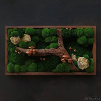 Rozměry obrazu jsou 80x44cm, rám je vysoký 7cm (obraz celkově cca 15cm). Obrazy jsou ručně vyrobené ze stabilizovaného mechu, rostlin a sušených hub tzn, že jsou bezúdržbové. Do obrazů je používán pravý, přírodní mech, který je stabilizován za pomoci konzervační látky. Rámy jsou smrkové, mořené, nabarvené nebo lakované. Obraz nesmí přijít do kontaktu s vodou nebo být skladován ve vlhkém prostředí. Vystavení přímému slunečnímu svitu snižuje životnost obrazu.