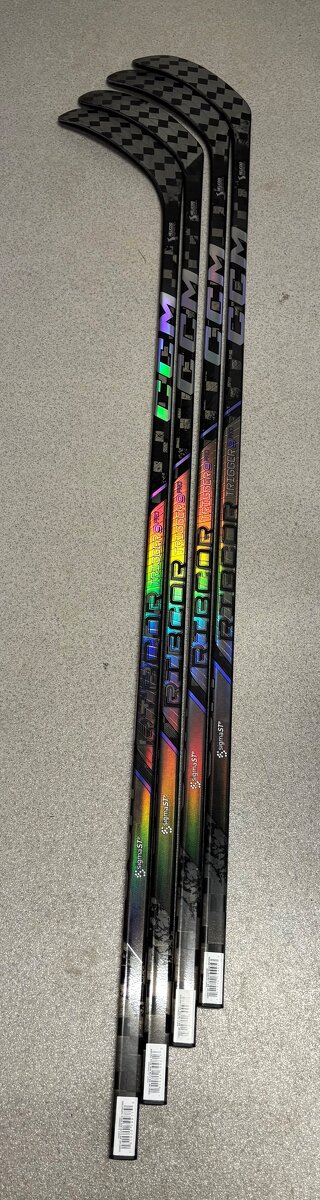Prodám hokejky nejvyšší řady ccm Trigger 9 Pro ve flex a zahnuti viz foto . Cena za kus. Záruka pravosti hokejek . Komisní prodej .