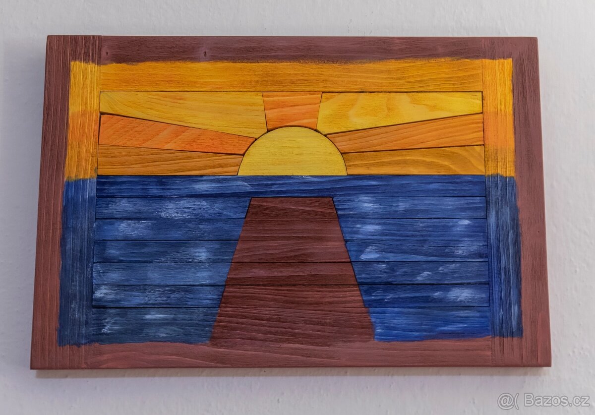 Obraz z recyklovaného dřeva. 43x28,5. Rám čepován. Barvy Akrylátové - Renesans