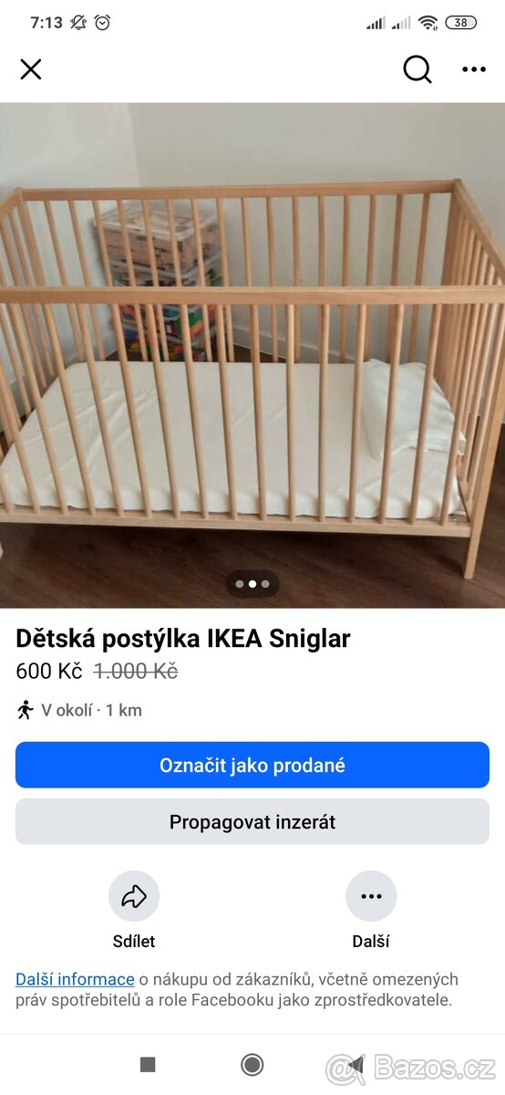 Dětská postýlka bez matrace a příslušenství. Málo používaná.