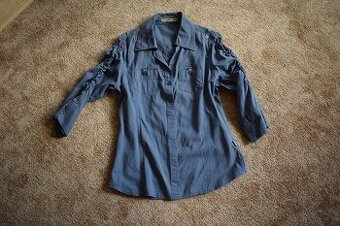 Prodám košili, halenku ve velikosti S/36, zn. Here. Nošená málo, v dobrém stavu, 100% bavlna. Dlouhá 60cm, široká 2x38-46cm, rukáv 39cm.