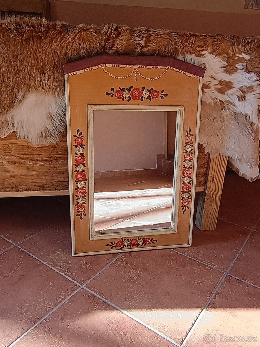 smrkové starožitné zrcadlo, celkové rozměry: 65 x 43 cm, vhodné na chalupu, penzion, pro info volat 603210073