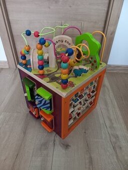 Krásná dřevěná kostka, syn se s ní velmi zabavil. Najde se nějaký škrábanec, ale jinak super stav. Popis od výrobce: Dřevěná krychle s motivy zvířátek ze zoo a množstvím pohyblivých různorodých aktivit zajistí vašemu dítěti hodiny zábavy. Každá strana krychle nabízí jiný typ aktivity. Vyrobeno z vysoce kvalitního dřeva s krásnou povrchovou úpravou. Rozměry: 34,3 × 30,5 × 45,1 cm. Vhodné pro děti od 1 do 3 let. Hmotnost 6,7kg.