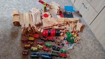 Nabízím sadu kolejí s příslušenstvím po dvou dětech. Sada obsahuje vše, co vidíte na fotce. Tunel, jeřáb, nádraží, rozdvojky, speciální spojovací koleje, 6 postaviček, rovné koleje, zatáčky, vagonky a vláčky. Vše za 900 Kč + poštovné. Případně se dá osobně předat v Týně nad Vltavou a okolí.