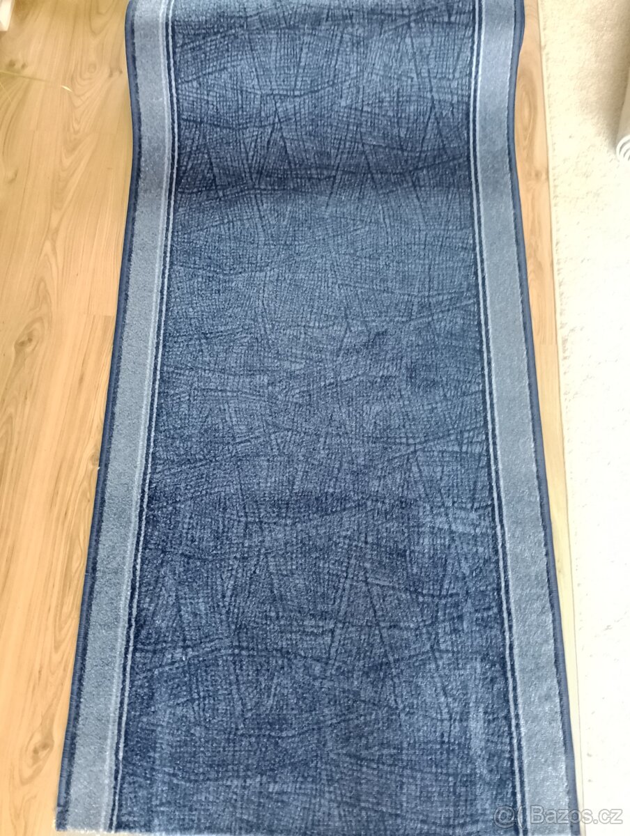 Prodám nový modrý běhoun.Delka 4,5m šíře 80cm.Spodni strana protiskluz.