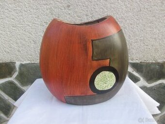 Prodávám starší keramickou vázu, hnědou s oranžovo bílým dekorem. Ruční práce, velikost 26x26cm, výška 12cm. Velmi dobrý stav, osobní převzetí nebo zásilkovna.