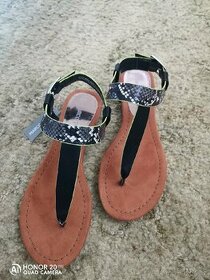 Zabky, sandale, Marco Tozzi. Velikost 38, uplne nove, nenosene, jeste s visackou. Hadi vzor, cerne s limetkovym lemovanim.