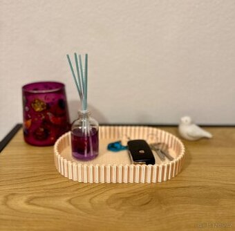 Elegantní odkládací tác vyrobený na 3D tiskárně. Rozměr: 12 × 20 cm. Na fotografii v barvě champagne, možnost výroby i v jiných barvách – viz foto + černá. Ideální na šperky, klíče nebo drobnosti, které chceš mít vždy po ruce.