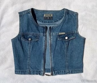 Prodám moc hezkou riflovou vestu vel. S, ve výborném stavu, moc jsem ji nenosila a jen leží ve skříni. Míry viz foto. Kontakt přes e-mail.