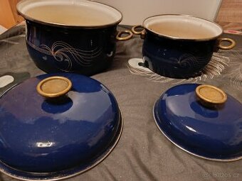 Retro smaltované hrnce vady na fotce. Je potřeba umejt ale nic strašného