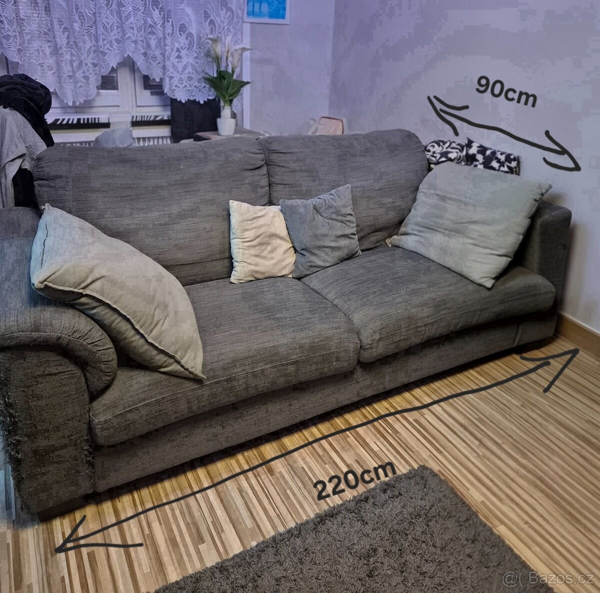 Pohovka je zachovalá jen trožku poškrábaná na krajním rohu od kočky.