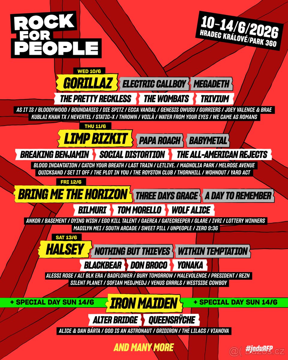 Prodám vstupenku na 4 dny na Rock for People 2026 možné osobní předaní.