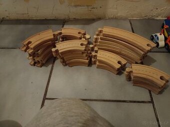Prodám dřevěné koleje, různé vláčky a budovy, vše je na fotkách. Koleje jsou po dvou dětech, některé kousky pomalované. Koleje jsou kompatibilní s ostatními prodejci