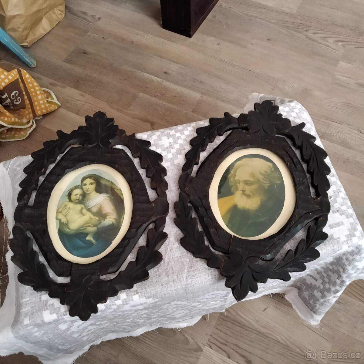 ,dve drevorezby svate ks500kc obe950kc,medailonky ks150kc,mosazny hraci stary svaty900kc,dreveny 21cm 550kc,busta glazura 22cm 850kc ,krize dřevěné ks700kc 80*40/60*30cm,dohoda