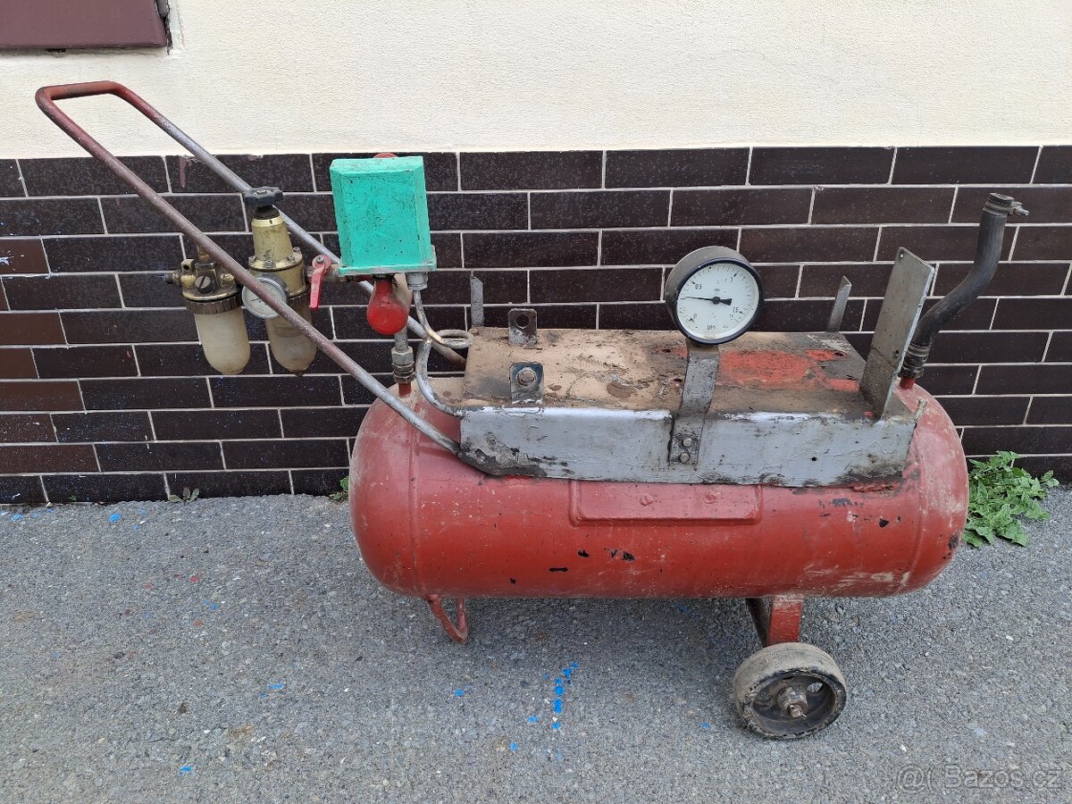 Prodám vzdušník kompresoru, nádoba není originál, základová deska pro el.motor a kompresor je Orlík.
