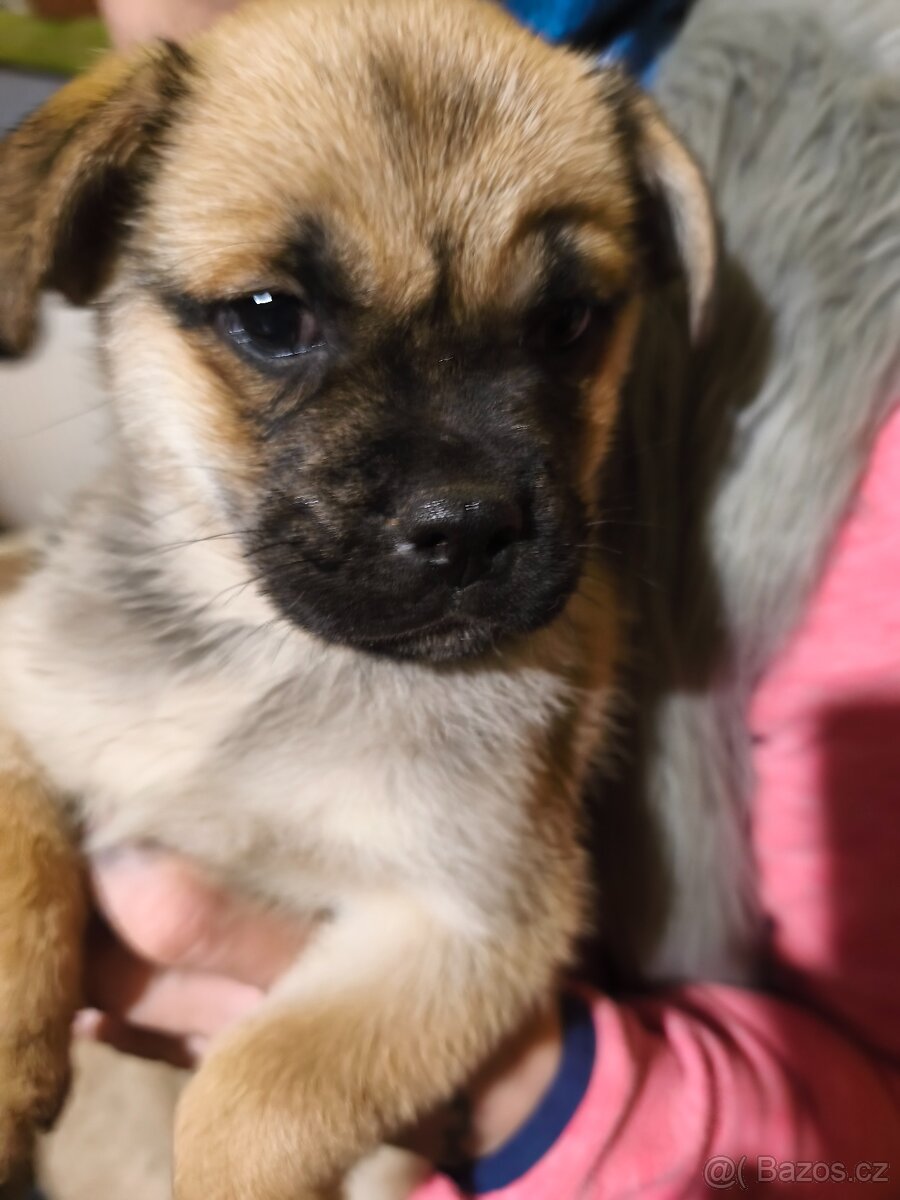Mops - krizenciNabízíme stenatka, fenku a dva pejsky. Matka čistokrevný Mops, otec borderkolie. Jsou odčervená, očkovaná i cipovana.