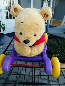 medvídek Pú se může použít jako Odrážedlo na kolečkách, zvednutím koleček vznikne houpačka pro děti. Medvídek je na baterie, hraje asi 10 melodií, hýbe nosíkem a pusou, měří : d 60 cm, v. 40 cm i s kolečkama. Je pěkný, plně funkční. Zasílám balíkovnou nebo zásilkovnou