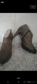 Zajímavé boty z pravé přírodní kůže na štíhlém podpatku 9,9 cm uvnitř boty skrytá platforma 2,4 cm pro pohodlné nošení. Velikost 39. Nové, nikdy nenošené.