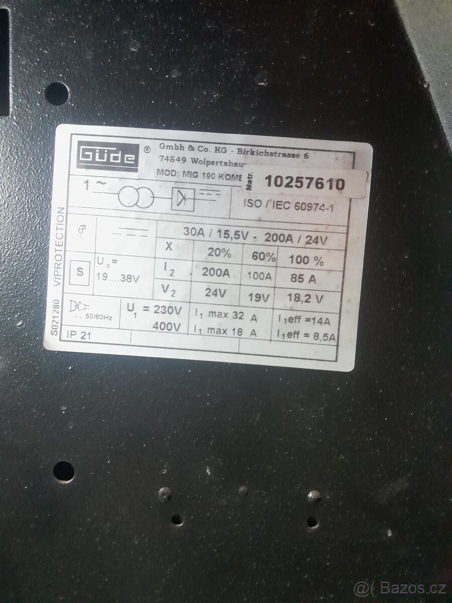Nefunkční Güde 190 CO2 ,displej,posuv funkční,zjevně nic nevypálené cena 600kkč