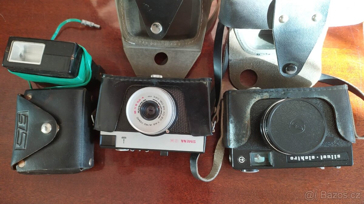 Fotoaparát SMENA 8M - 300,- Fotoaparát SILUET ELEKTRO - 200,- Blesk SL 5 - 100,-