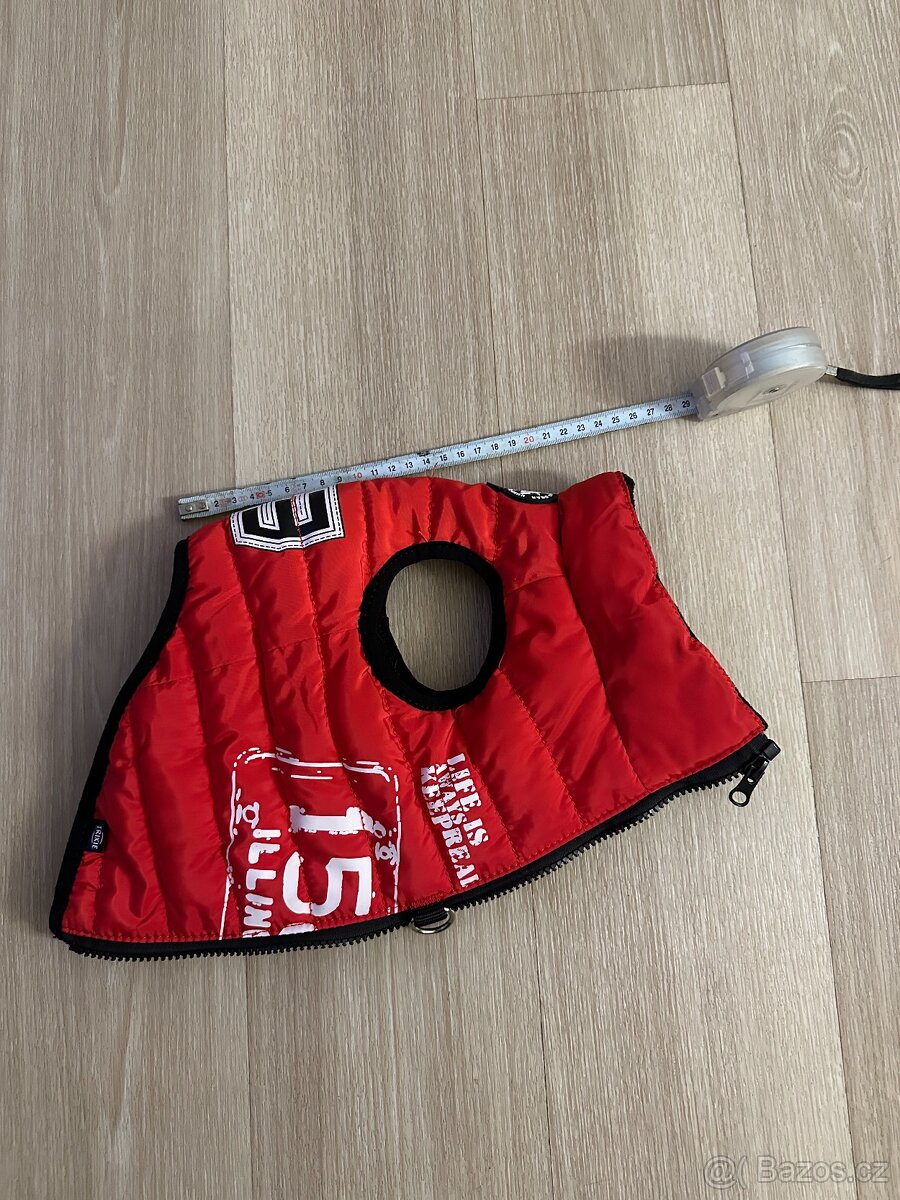 Prodám dvě zateplené vestičky pro psy, nenošené, míry ve fotu, pošlu přes zásilkovnu,poštu,nebo osobně, cena za jednu je 180,-Kč. + zásilkovna.