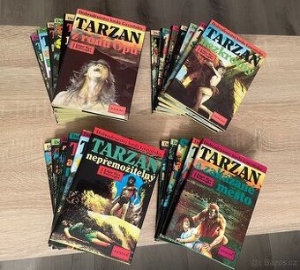 E. A. Burroughs: Romány o Tarzanovi Stav: Jako nové Komplet: Tarzan z rodu Opů (1. díl) Tarzanův návrat (2. díl) Tarzanovy šelmy (3. díl) Tarzanův syn (4. díl) Tarzan a klenoty Oparu (5. díl) Tarzanovy povídky z džungle (6. díl) Tarzan nezkrotný (7. díl) Tarzan strašný (8. díl) Tarzan a zlatý lev (9. díl) Tarzan a trpasličí lidé (10. díl) Tarzan, pán džungle (11. díl) Tarzan a ztracená říše (12. díl) Tarzan v nitru Země (13. díl) Tarzan nepřemožitelný (14. díl) Tarzan vítězný (15. díl) Tarzan a město zlata (16. díl) Tarzan a lví muž (17. díl) Tarzan a leopardí muži (18. díl) Tarzanovo pátrání (19. díl) Tarzan a zakázané město (20. díl) Tarzan velkolepý (21. díl) Tarzan a cizinecká legie (22. díl) Tarzan a šílenec (23. díl) Tarzan a ztracenci (24. díl)