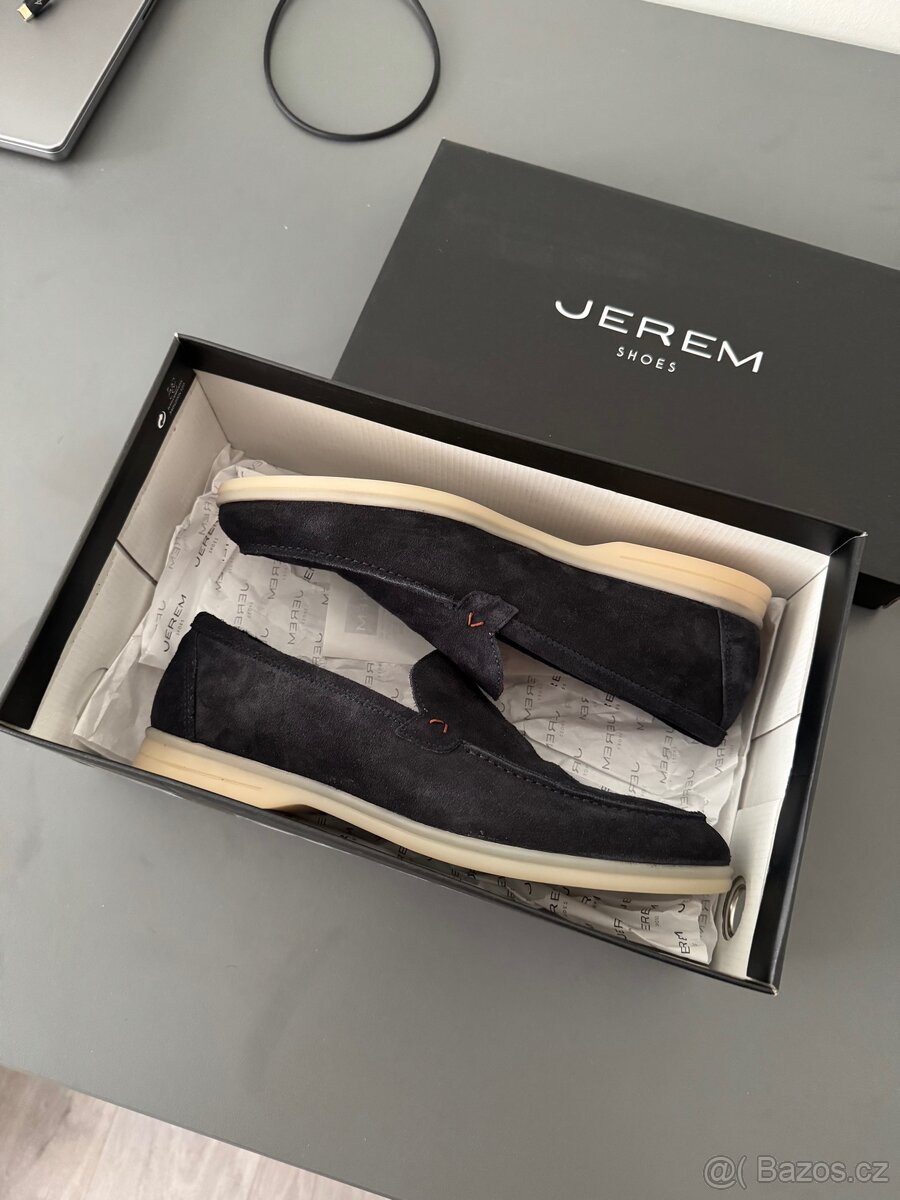 Navy Blue (námořnická modrá) mokasíny / loafers Velikost: 42 Stav: nové nenošené Materiál: broušená kůže Značka: Jerem Paris Podobné jako Tod’s, Loro Piana