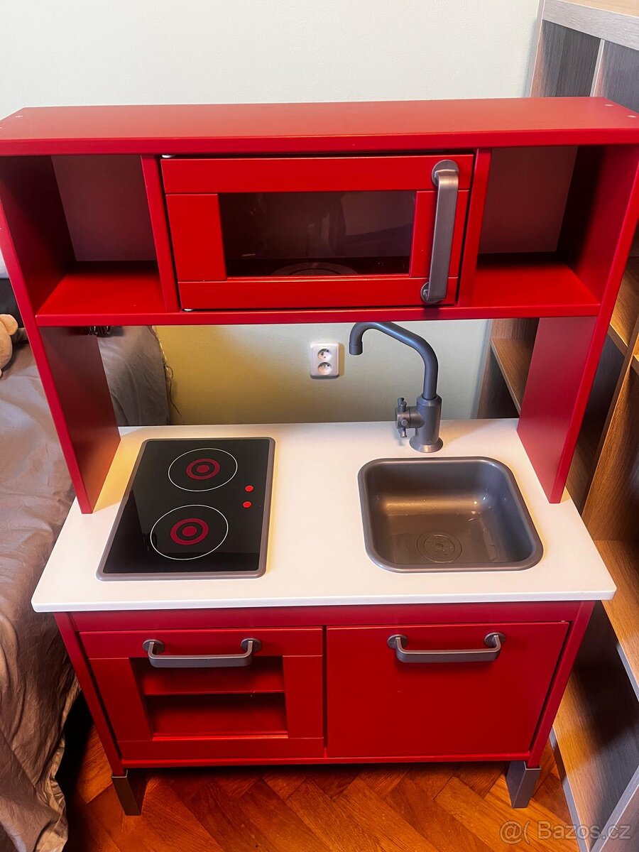 Prodám dětskou kuchyňku IKEA, červené, stav jako nová. Cena 1 500 Kč, osobní odběr, Brno. Důvod: stěhování.