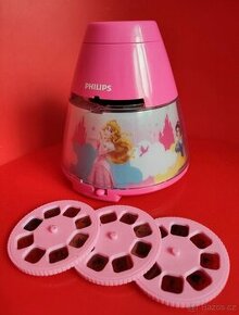 Noční lampička s projektorem zn. Philips Napájení na 3xAA baterie Včetně 3 koleček s obrázky princezen Disney Používané, ale v pořádku PC 950,- Kč