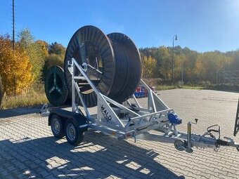 Prodám nové kabelové přepravníky. Masivní konstrukce. Žárově zinkováno. Nápravy a nájezdová brzda německého výrobce KNOTT Celková hmotnost 3500kg Hmotnost přívěsu 690kg Možno naložit cívku o hmotnosti 2810kg 3 výšky uchycení cívky lze nastavit dle potřeby. Maximální možná šířka cívky 1800mm Kvalitní ruční naviják KNOTT Sklápění asistované pomoci plynových vzpěr. Běžně máme skladem (Uvedená cena bez DPH) Možná i varianta 2.7t ve stejném rozměru.