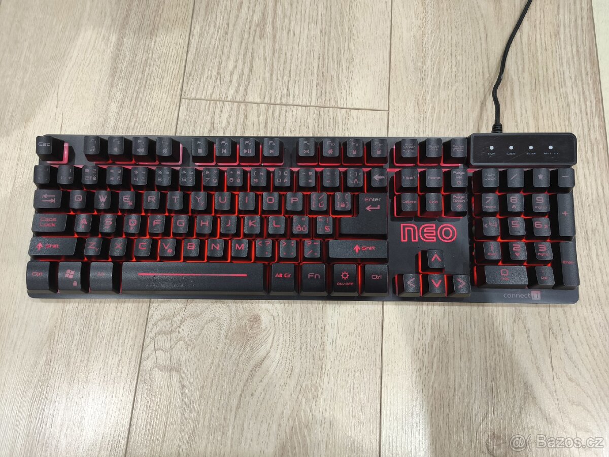 Herní klávesnice bez problémů funguje. Možnost měnění barev nebo stylu svícení. pozlacený USB konektor. návod na přepínání barev a stylů v sz