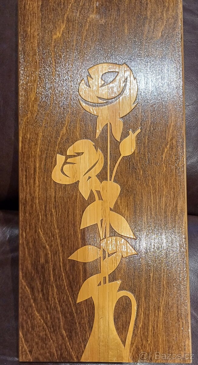 Dřevěný obraz - růže ve váze. Velikost 41 x 19 cm