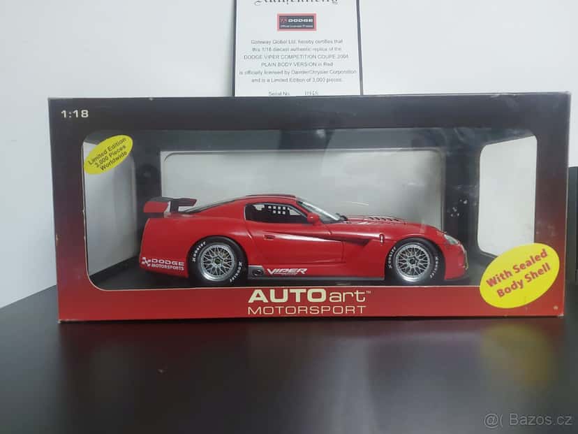 Dodge Viper Competition Coupe 2004 v měřítku 1:18 od AUTOart. Jedná se o die-cast repliku s oficiální licencí od DaimlerChrysler Corporation. Model je v červené barvě a provedení "Plain Body Version". Jedná se o limitovanou edici 3 000 kusů. Sériové číslo konkrétního kusu je 0948.