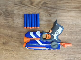 Záložní pistole nerf. Bohužel není v nejlepším stavu ale stále střílí za tuto nízkou cenu si myslím že dobrá koupě. zbrani už nefunguje laser a občas vynechává výstřely ale to výjimečně. Stále dobrý dostřel a na vyblnutí postačí. Ke zbrani 6 nábojů. Možnost odeslání a platba převodem.