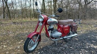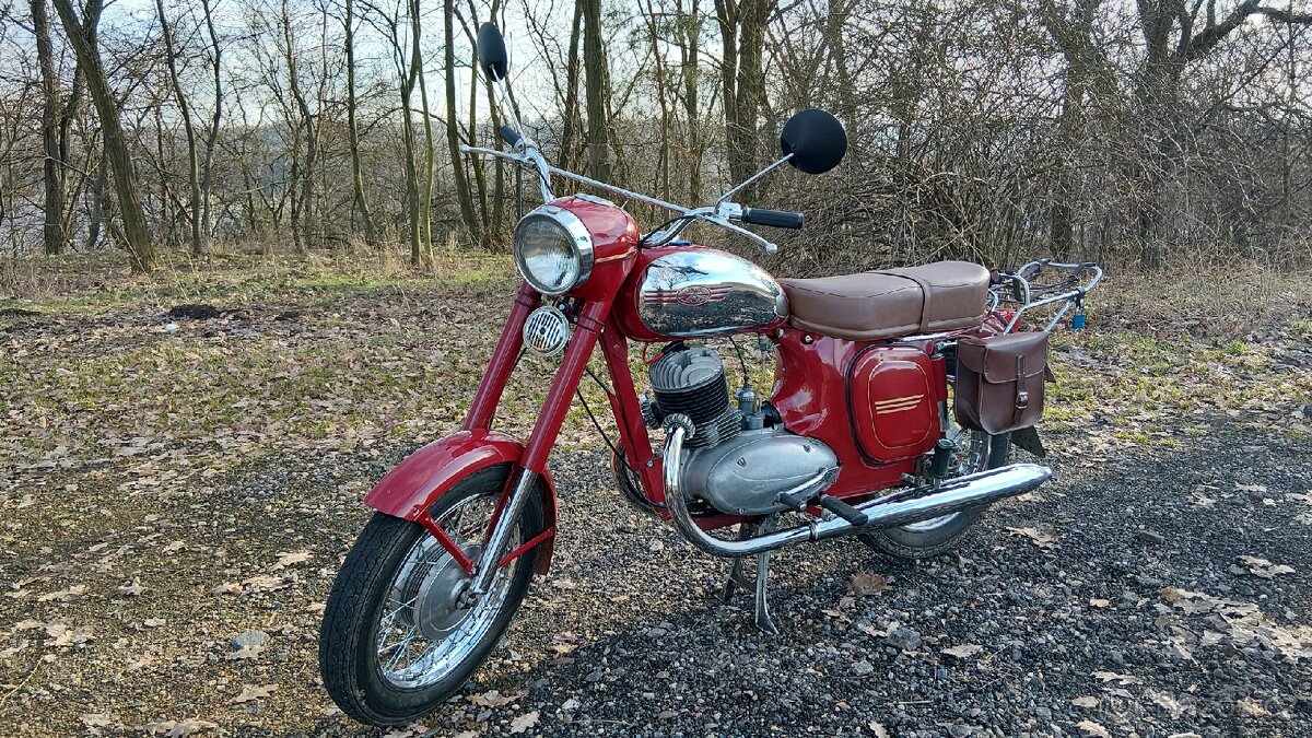 Prodám Jawu 250/353 rv.1960. Motorka má přepsatelné veteránské doklady. STK a testace platná do 3/2030. Motorka zhruba 3 roky po celkové opravě. Od té doby najeto zhruba 7000km. Při opravě se dělalo/popis motorky : Motor : Ložiska na klice, nový píst (originál MH), pístní kroužky, vidličky v převodovce, panelková spojka s Ferodo lamelami, primární řetěz, pružiny kulisy řazení, vývodové kolo převodovky, sekundární kolečko Elektro : nová vačka, kladívko, kondenzátor, uhlíky, rele dobíjení (vše nové originál díly) Minulý rok na podzim nová baterie Banner Podvozek : ložisko v krku řízení, přetěsnění předních a zadních tlumičů včetně nového oleje, nová rozeta včetně ložiska a sekundární řetěz, pneumatiky Mitas, zapouzdřená ložiska v lolech, originál páčky spojky a brzdy, sedlo od firmy veteransedla.cz, nová originál spínací skříňka, tachometr je slovenská replika (stav km odpovídá nájezdu od opravy), kryt řetězu je Česká replika, nová lanka a náhon tachometru Karburátor : šoupátko, pl