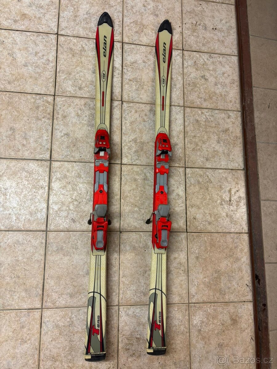 Prodám levně dámské lyže ELAN s vázáním, délka lyží je 158 cm.